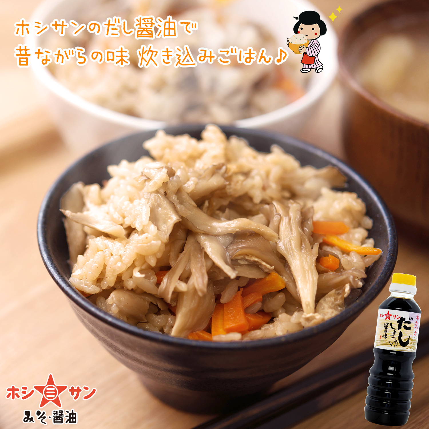 昭和34年10月に、「だししょうゆ《星の味》」として発売いたしました。九州・熊本の醤油をベースに、「かつお」と「にぼし(いりこ)」の「だし」を加えたしょうゆです。かつお節といりこを贅沢に使って煮出し、上品な味に仕上げました。