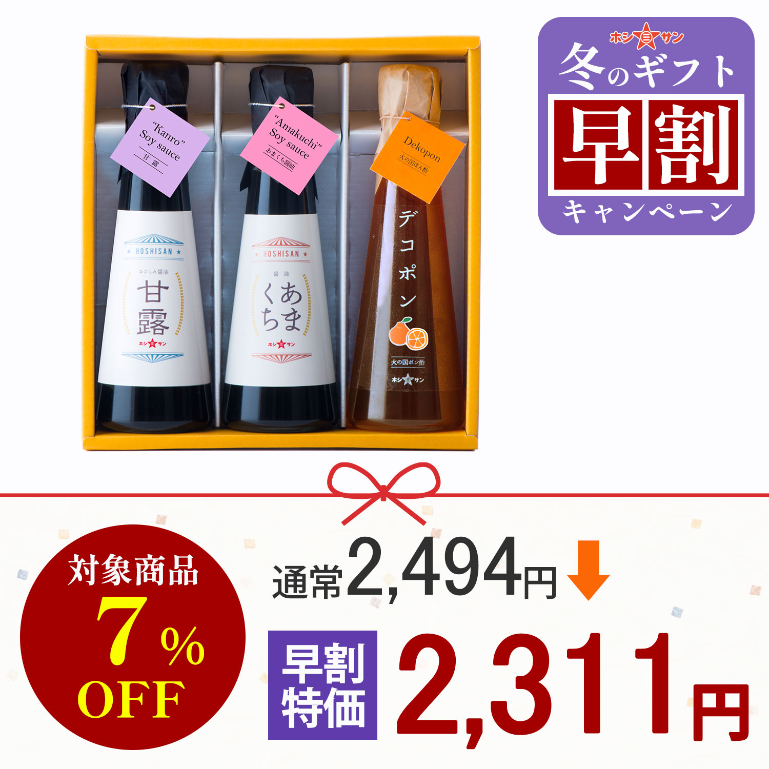 【ギフト早割キャンペーン】醤油・ポン酢3本セット 「凛-KP」 【ホシサン特選ギフト(お中元・お歳暮)】