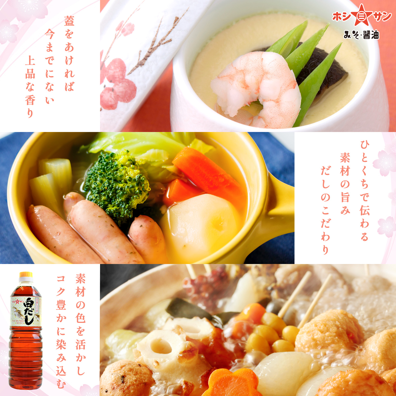 うすくち醤油に、かつお風味の濃厚なだしを合わせた「白だし☆」